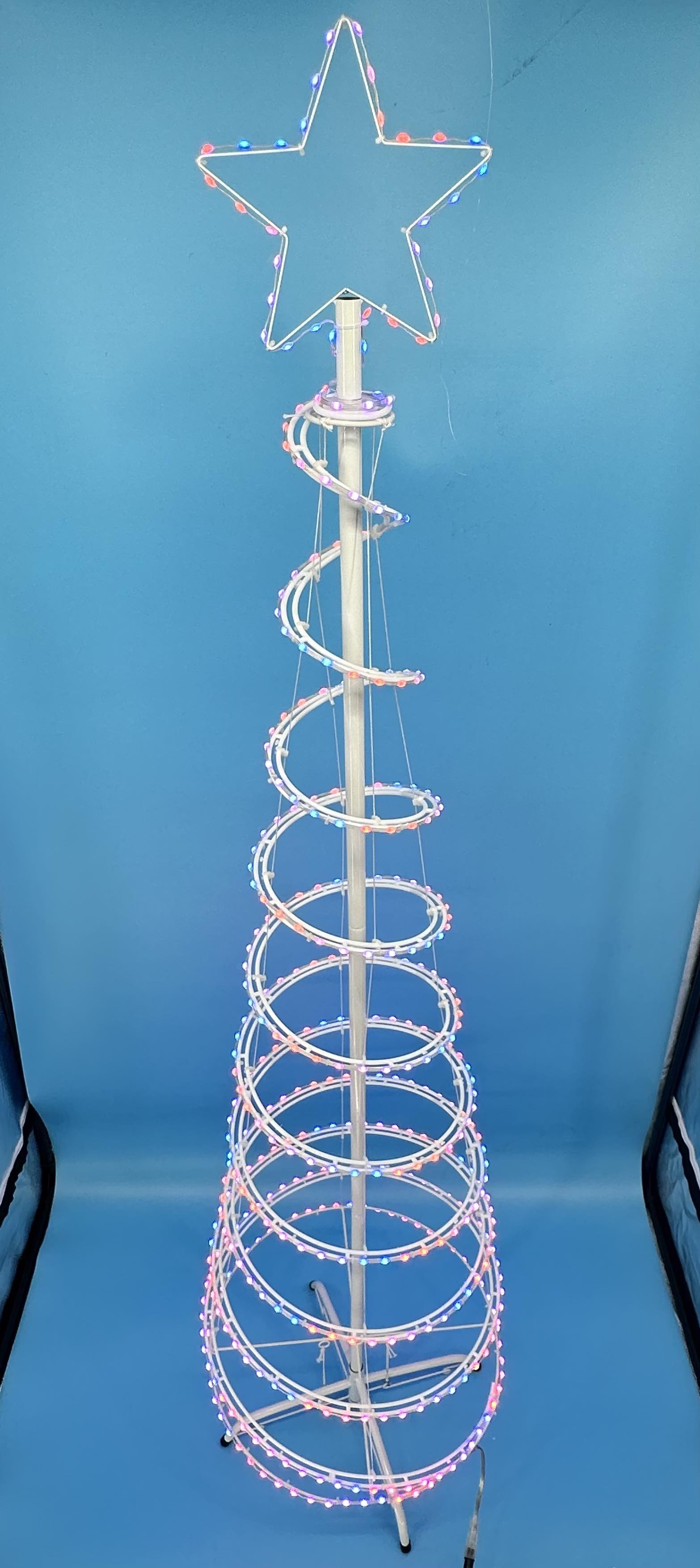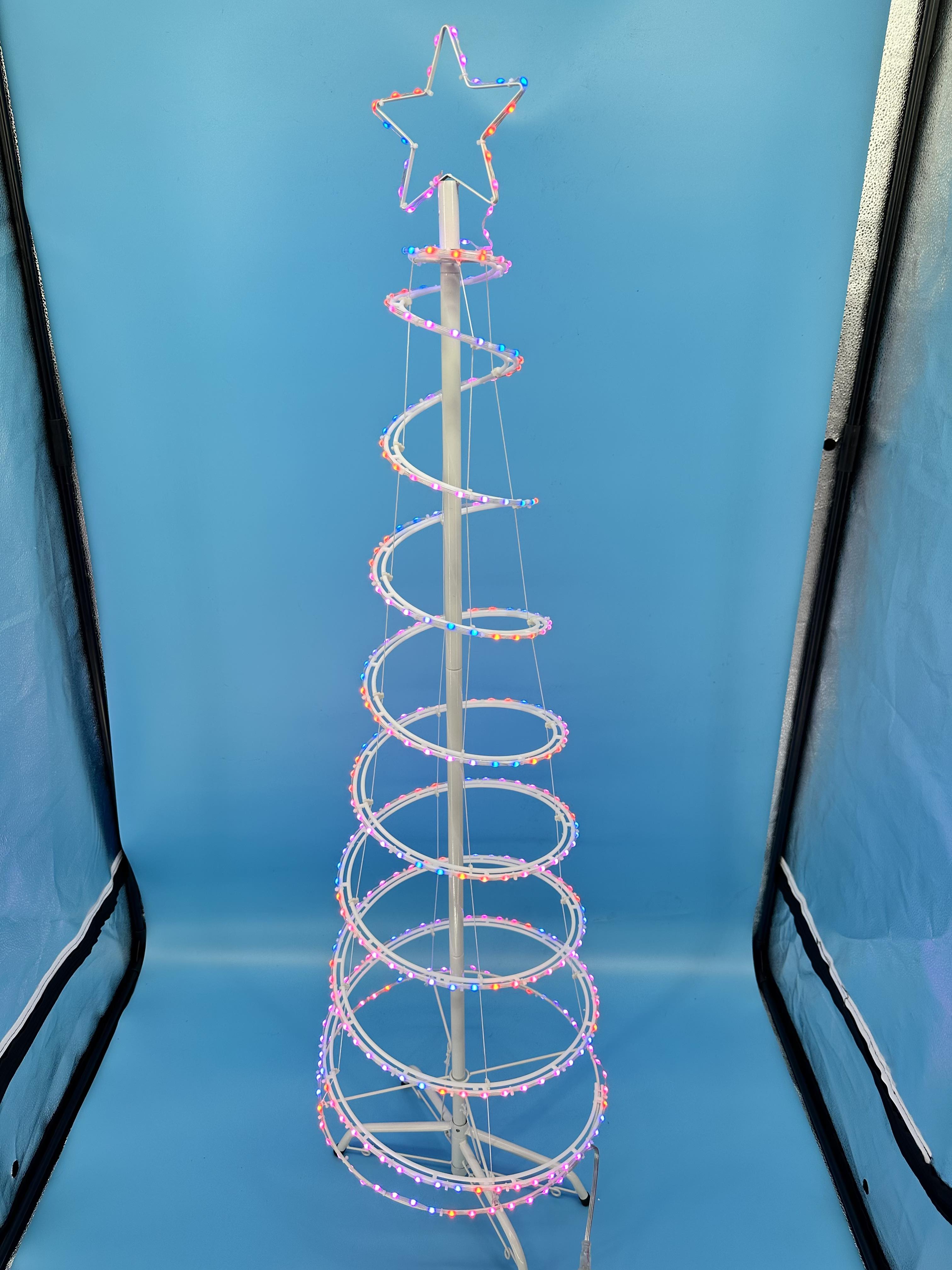 The RGB Decor Spiral Trees are the perfect blend of traditional holiday charm and modern RGB technology. These refreshed classic spiral trees feature white wire seed pixels with 1" spacing, ensuring uniform and vibrant illumination that will captivate any viewer.
