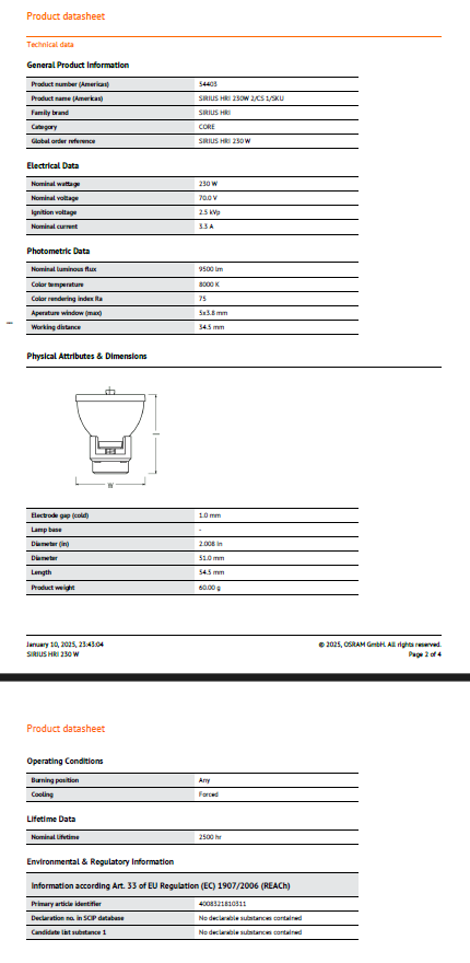 Light Source: 230W beam lamp