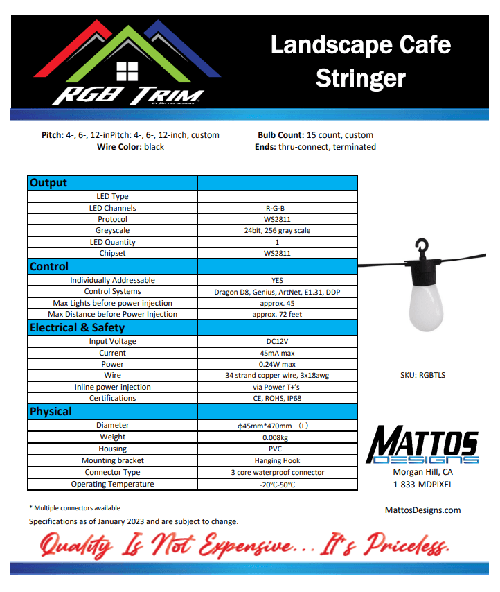 Enhance your outdoor gatherings with the vibrant and durable RGB Trim™ Landscape Cafe Stringer. Whether you’re hosting a garden party, lighting up your porch, or decorating your backyard, these string lights provide the perfect blend of color and reliability. Order now and bring your outdoor spaces to life!