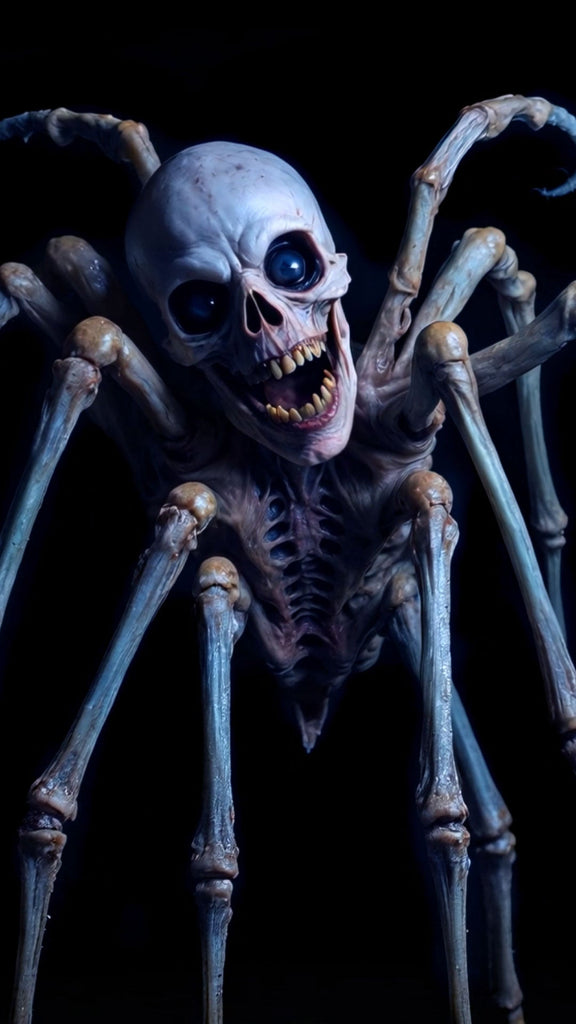Did this monstrosity once feast on human prey to claim their bones, or was it perhaps a human before some unspeakable transformation? Do not get close enough to find out! This spiderlike mutation will spin a web of terror for all who encounter it at your Halloween home – whether displayed on windows, walls, TVs, or Hollusion Projection Material. This grotesque fusion of human remains and arachnid horror defies nature itself.