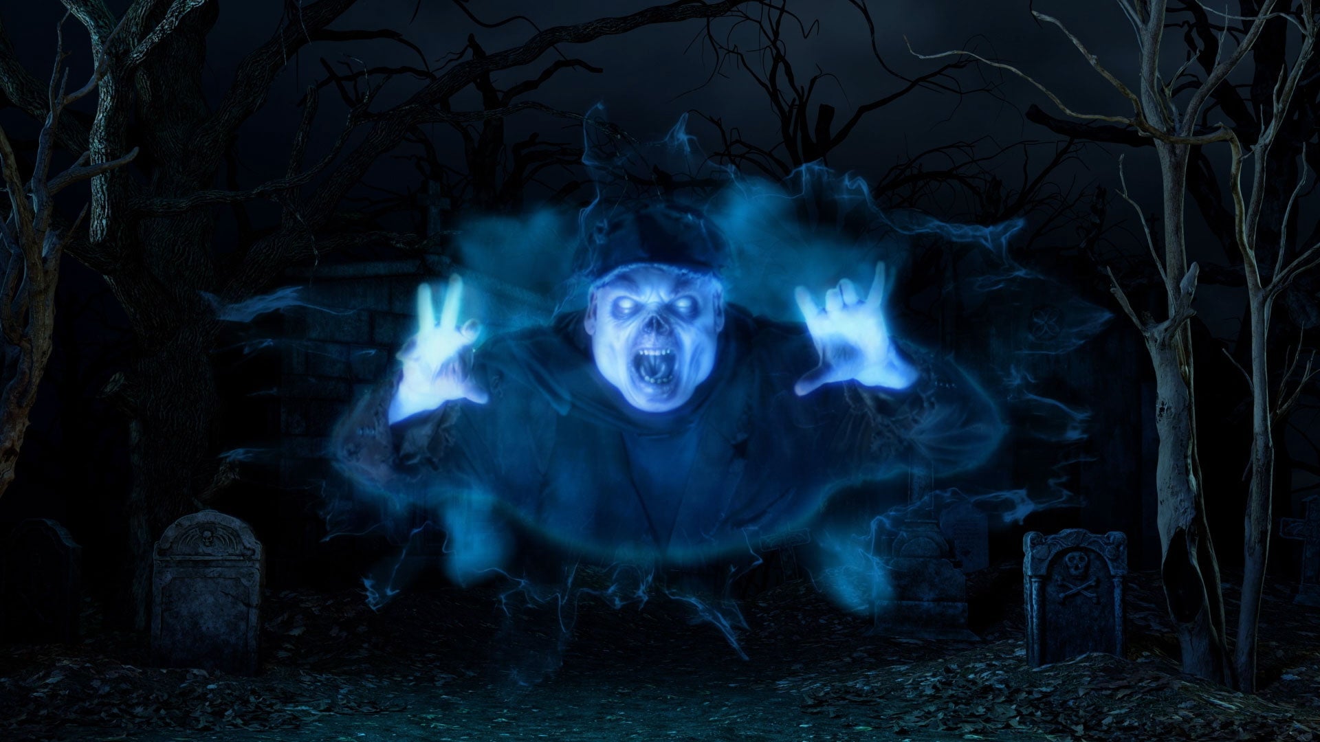 By day, a simple man with a shovel and lantern. By night, a restless spirit bound to the graveyards he once plundered. As the Grave Robber’s troubled story unfolds before the eyes of those who have gathered at your Halloween display, they might ask themselves what eternal price has he paid for his ill-gotten treasure? Project on windows, walls, TVs and the Decorating Disc XL to mesmerize a crowd. Or create a spine-chilling holograph-like illusion with Hollusion Projection Material, where the spirits rise at your Halloween home to warn of the consequences for defiling the sacred cemetery!