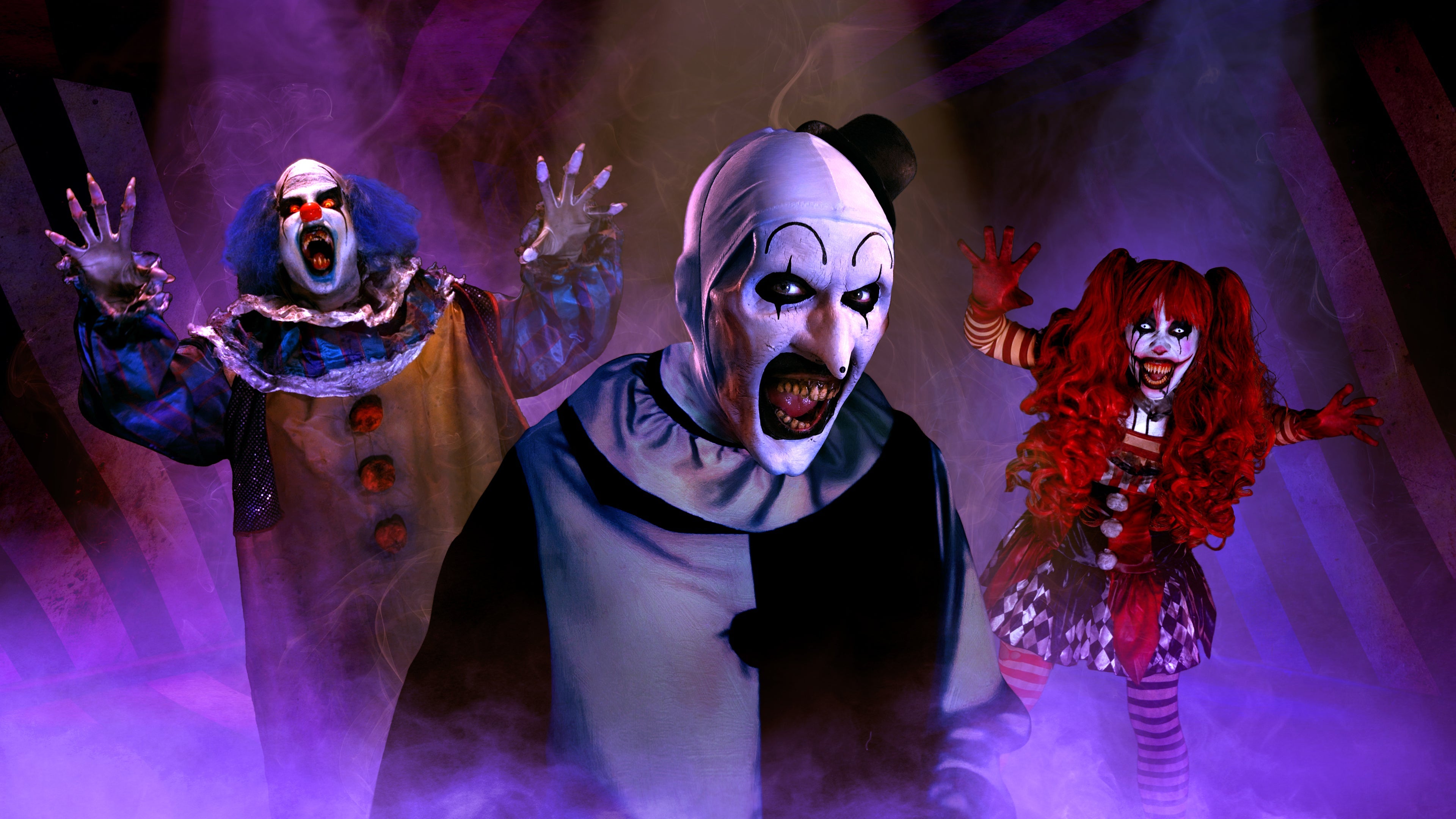 The circus left town, but three strange clowns have stayed behind to terrify your neighborhood.
