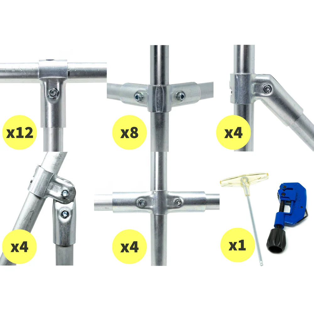 Not quite sure how to start your project? Get the Starter Bundle and you'll be up and building in no time! This bundle is designed so you have a variety of 3/4" EMT Conduit Connectors at the ready while you're building. Looking to build with 1/2" EMT instead? Choose the 1/2" variant and receive the necessary adapter shims with your Starter Bundle. There are (12) T's, (8) 90's, (4) 45's, (4) Adjustable Angle's, and (4) 180's in the base bundle.