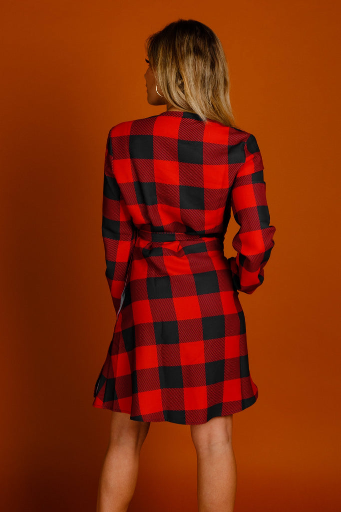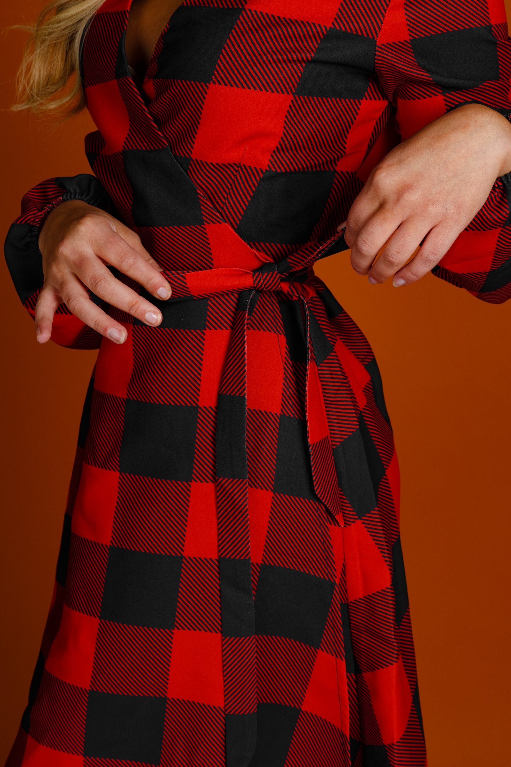 The Red & Black Lumberjack | Red Buffalo Check Christmas Wrap Dress