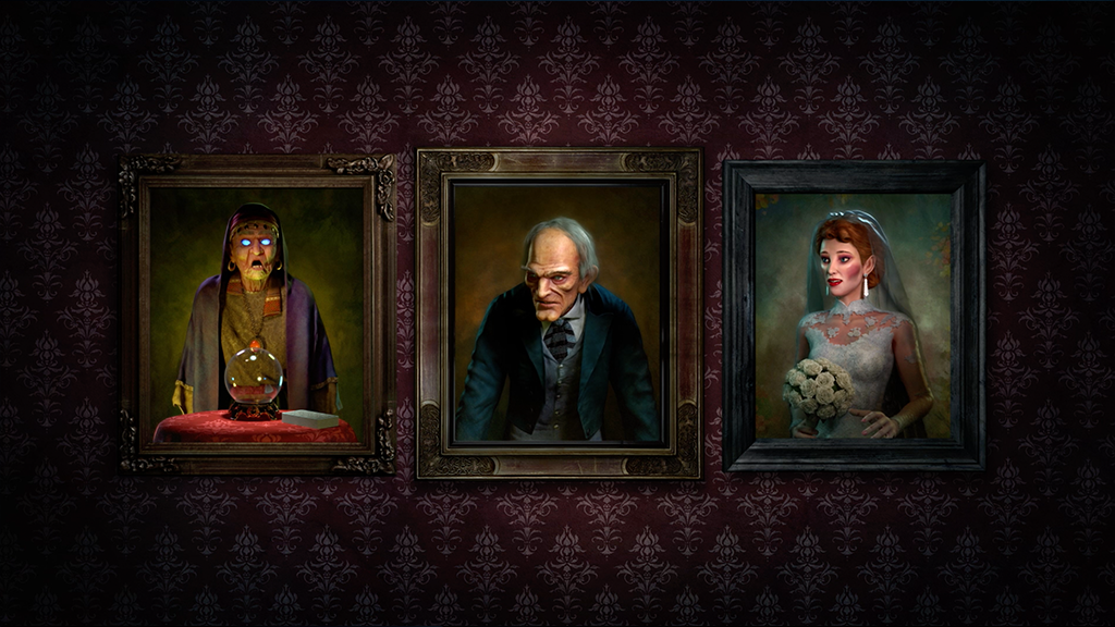 This gallery of peculiar portraits – the Brooding Butler, the Fortune Teller and the Bewitching Bride – ponder the many mysteries of the Halloween season. Halloween Hosts: UnLiving Portraits Digital Decoration Collection is an eccentric exhibit that is perfect to project on your walls or display on your TV. These strange souls are just dying to hang around your home – will you be a part of their story?