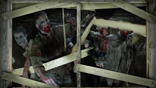 Ravenous walking dead smash their way through plaster walls and boarded-up windows in search of a Halloween snack. The "Zombie Breach" Decoration presents an apocalyptic experience for any horror fan in both shambling silhouettes and grisly, full-color chaos optimized for wall and window projection. Or invite them into your home by playing on a TV/Monitor.