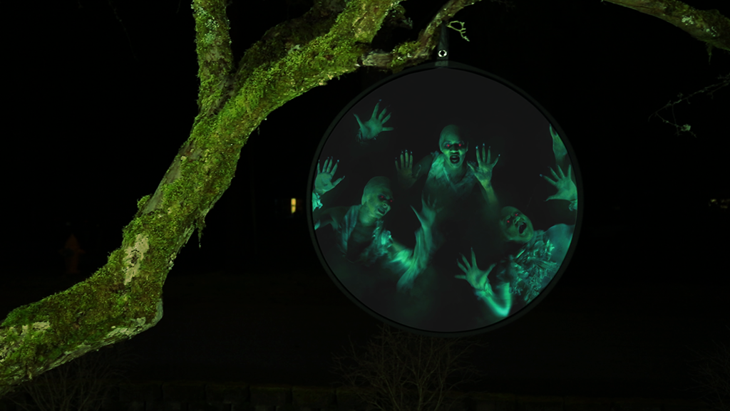 Pop open this circular projection screen and, within seconds, nearly any space can become host to a dynamic digital celebration. Portable and lightweight, it’s easy to display numerous AtmosFX Decorations – be it fireworks, Christmas carolers, or ghosts!