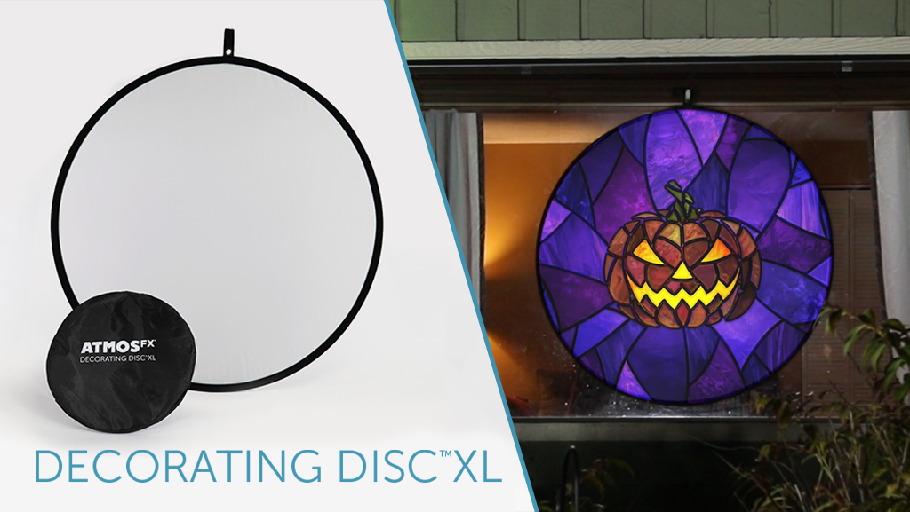 Create dramatic decoration displays with the innovative AtmosFX Decorating Disc XL, a 43-inch in diameter circular projection screen that brilliantly captures AtmosFX Decorations optimized for circular projection. Celebrate numerous holidays and occasions anywhere with this portable screen, including Halloween, Christmas, Easter, Independence Day, birthdays and more.