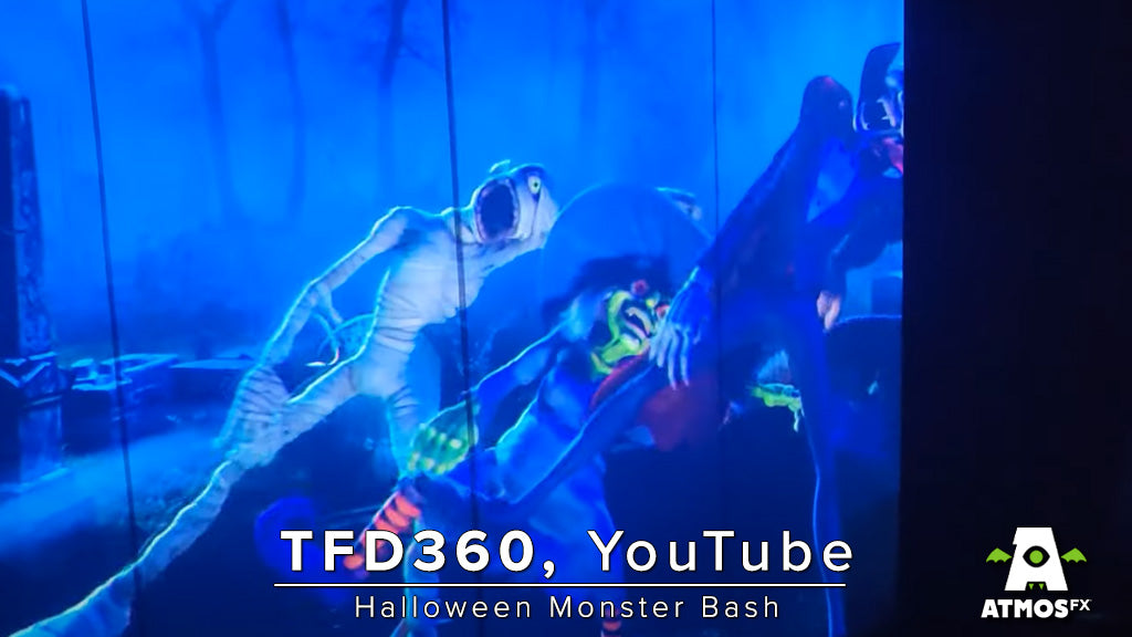 Host a spirited Halloween dance party with Dracula, the Mummy, the Wolfman, and other iconic monsters leading the musical festivities! With the family-friendly Halloween Monster Bash Decoration Collection, your driveway will become an energetic dance floor as trick-or-treaters get down to three compelling routines, plus a performance from a five-piece monster band. Also included are a set of spooky and silly scares, each of which are certain to delight children and adults alike. The entire neighborhood will groove to the Halloween spirit no matter where you display these decorations – on windows, walls, TVs and even Hollusion Projection Material!