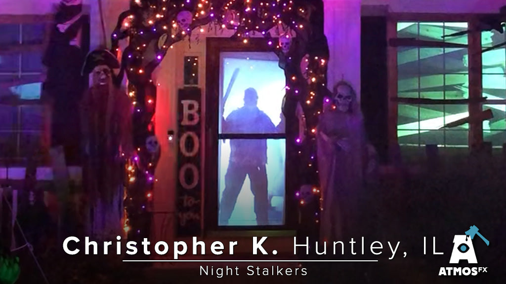 Set the tone for terror this Halloween when you project this horrifying homage to ’80s-era horror films. Presenting a murderer’s row of masked maniacs, the Night Stalkers Decoration Collection is not for the faint of heart. Featuring frightened “final girls” and their relentless pursuers who lurk in the shadows and fog, and smash their way through walls, doors, and windows. An outstanding decoration when projected on windows or creating a Hollusion effect in a door, it’s also a terrifying treat on walls or a TV/Monitor.