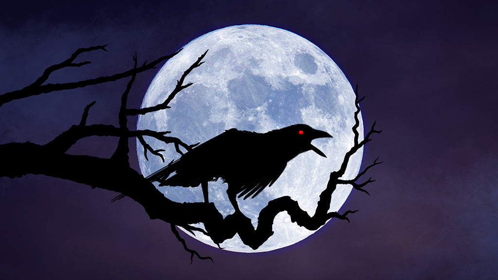 A gnarled tree branch extends in the light of a bulbous moon – who will find rest here?