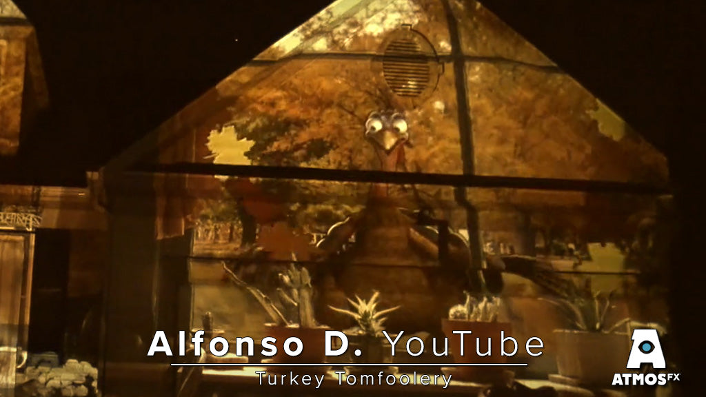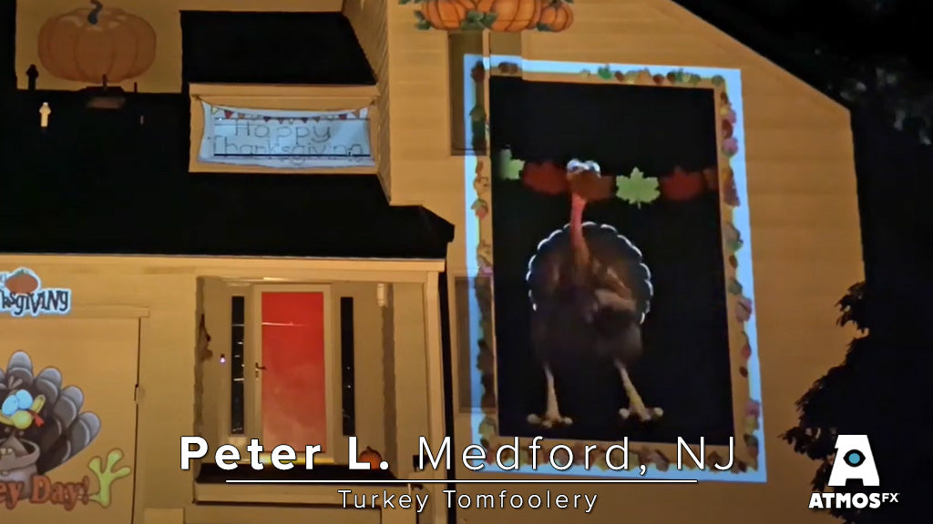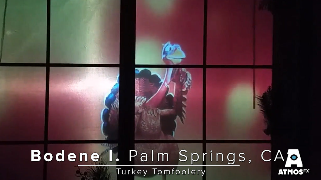 Invite some fun to your Thanksgiving dinner celebration with the comical hijinks of our cartoonish turkey, Tom! Whether he’s struggling to hang festive holiday decorations or racing about with excitement, the Turkey Tomfoolery Decoration will be the star of your gathering. A tasty addition to your event when projected on walls, windows, Hollusion Projection Material, or the Decorating Disc XL to entertain your Thanksgiving guests, he’s also a savory side dish of joy when played on a TV or Monitor.