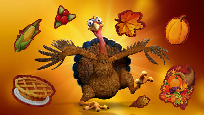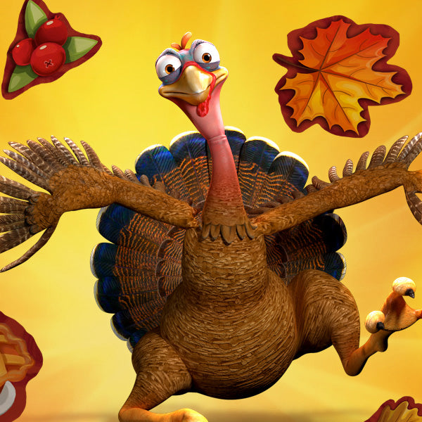This turkey takes center stage for your Thanksgiving dinner with his adorable & comical antics.