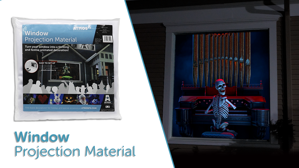 AtmosFX Window Projection Material is a woven polyester fabric specially designed to clearly and accurately display AtmosFX Decorations. Moreover, it’s easy to set up, store, and reuse year after year.