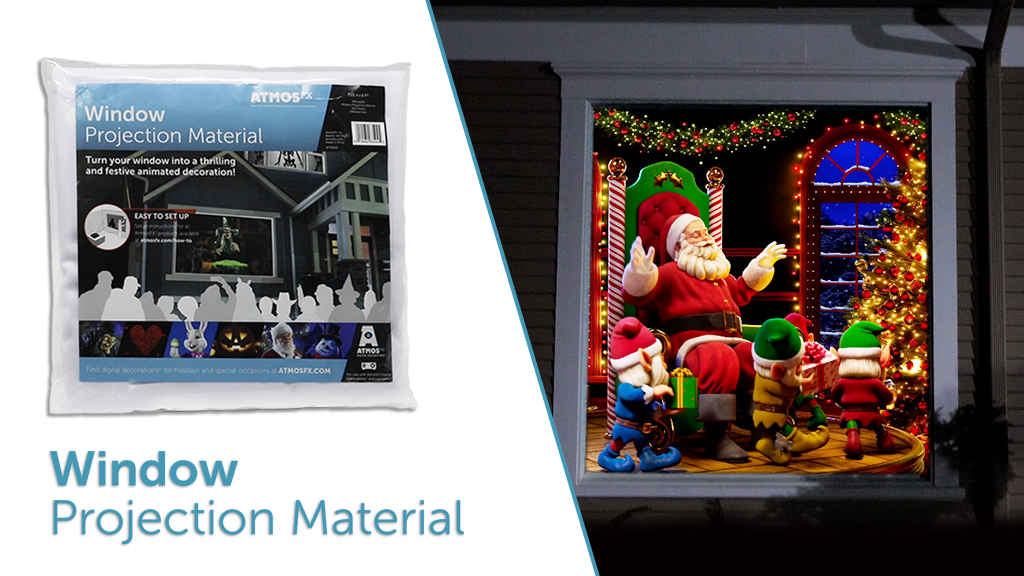 Convince your neighbors that ghosts inhabit your house, or Santa is making an early visit! Crisply display any projected AtmosFX Decoration in your window — it’s the perfect way to show that your house is the place to celebrate, any time of year!