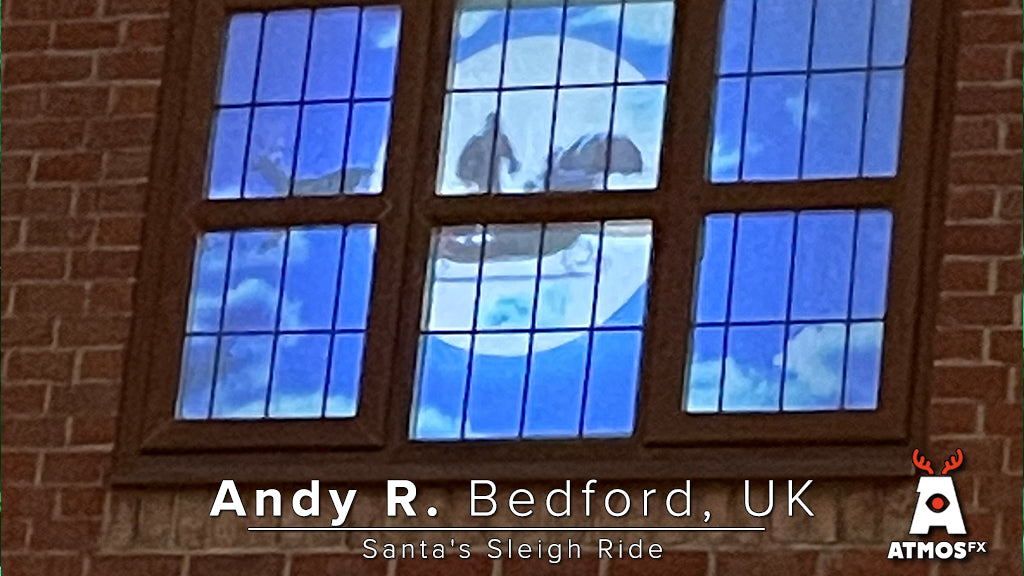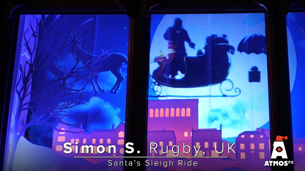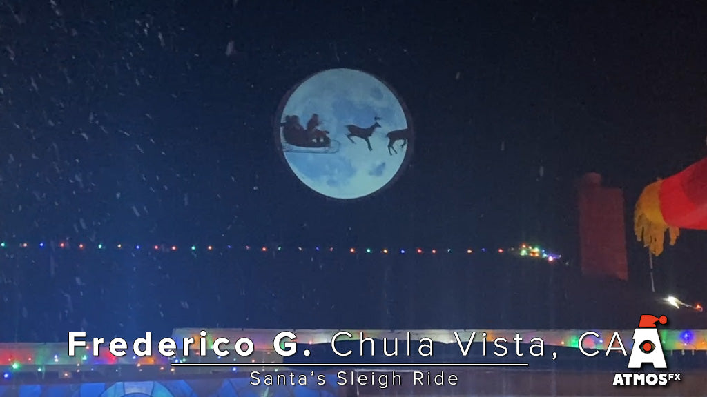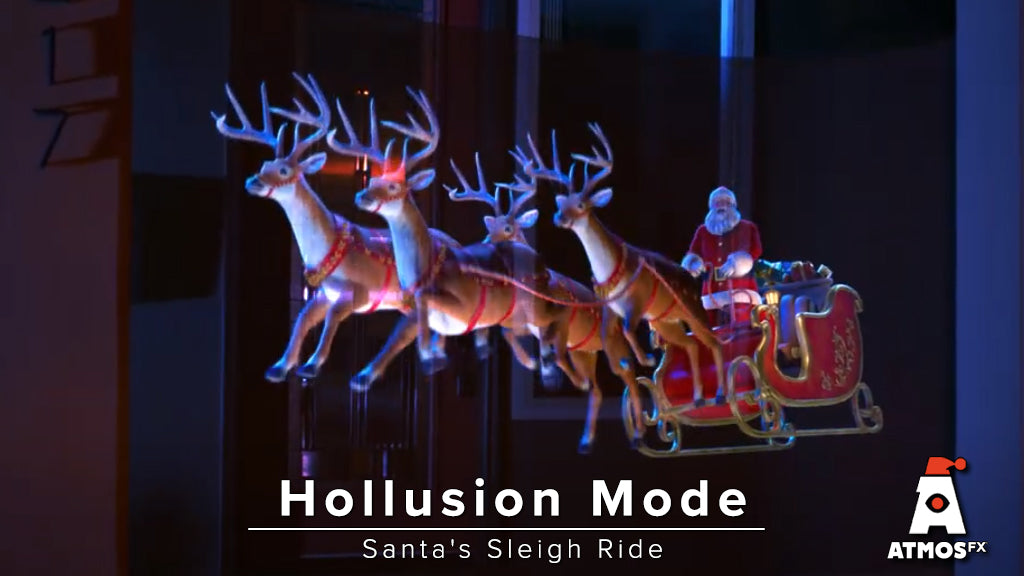 Join Santa and his reindeer as they make a magical trip around the world delivering beautifully wrapped presents in Santa’s Sleigh Ride Decoration Collection. Your family will love this high-flying projection of Ol’ St. Nick as he soars across the night sky, ensuring every child will find joy under the Christmas tree. Project onto the AtmosFX Decorating Disc XL to see Santa silhouetted against a beautiful full moon, or place Hollusion Projection Material on your roof to convince the neighbors that Santa will soon arrive at your home. Or simply display on windows, walls or TVs to make even skeptics believe in Christmas miracles!