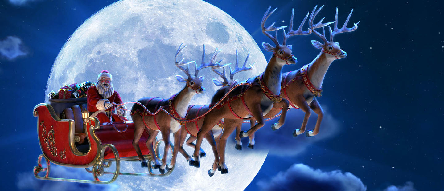 Santa and his reindeer make a magical trip across the night sky, delivering gifts around the world.