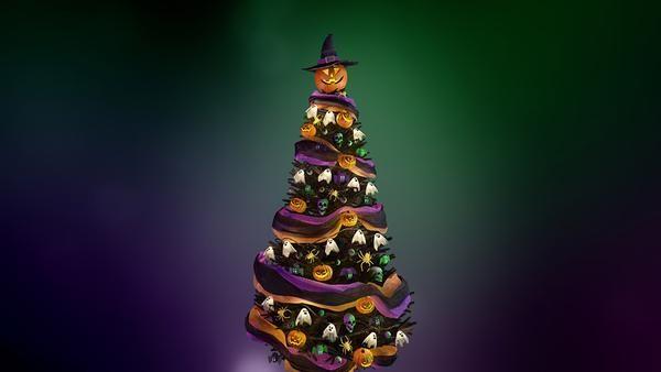 Bring home a playful nightmare on Christmas with this spooky Halloween-themed tree decked with strings of orange lights, animated skulls, spiders, and bats